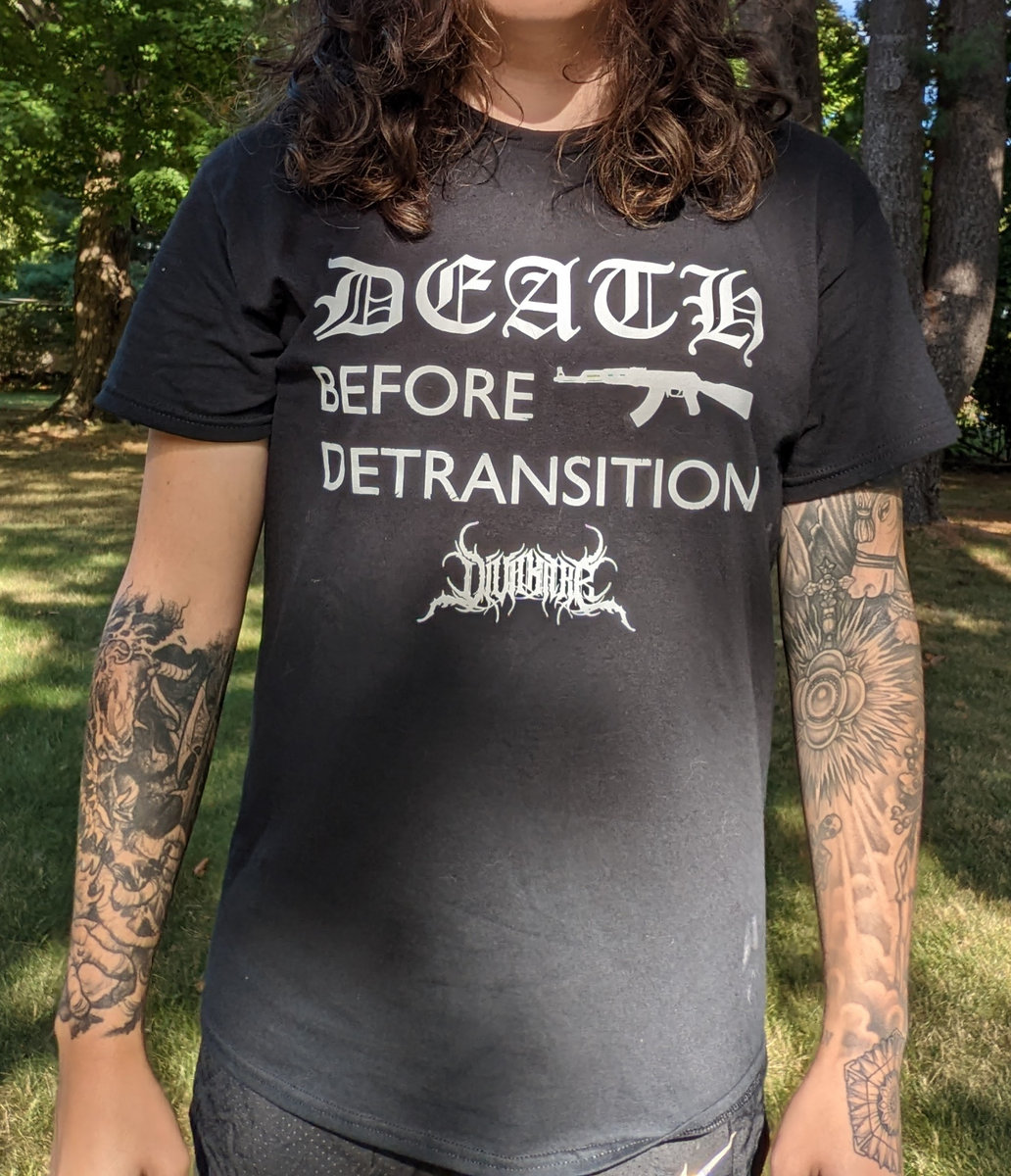 There has been a clear uptick in violent rhetoric from the pro-trans side over the last 2 years. They’ve even started using the phrase “death before detransition” and sharing it with conspiracies about starting some sort of neo-Bolshevik revolution. Shirts like this one are being made: